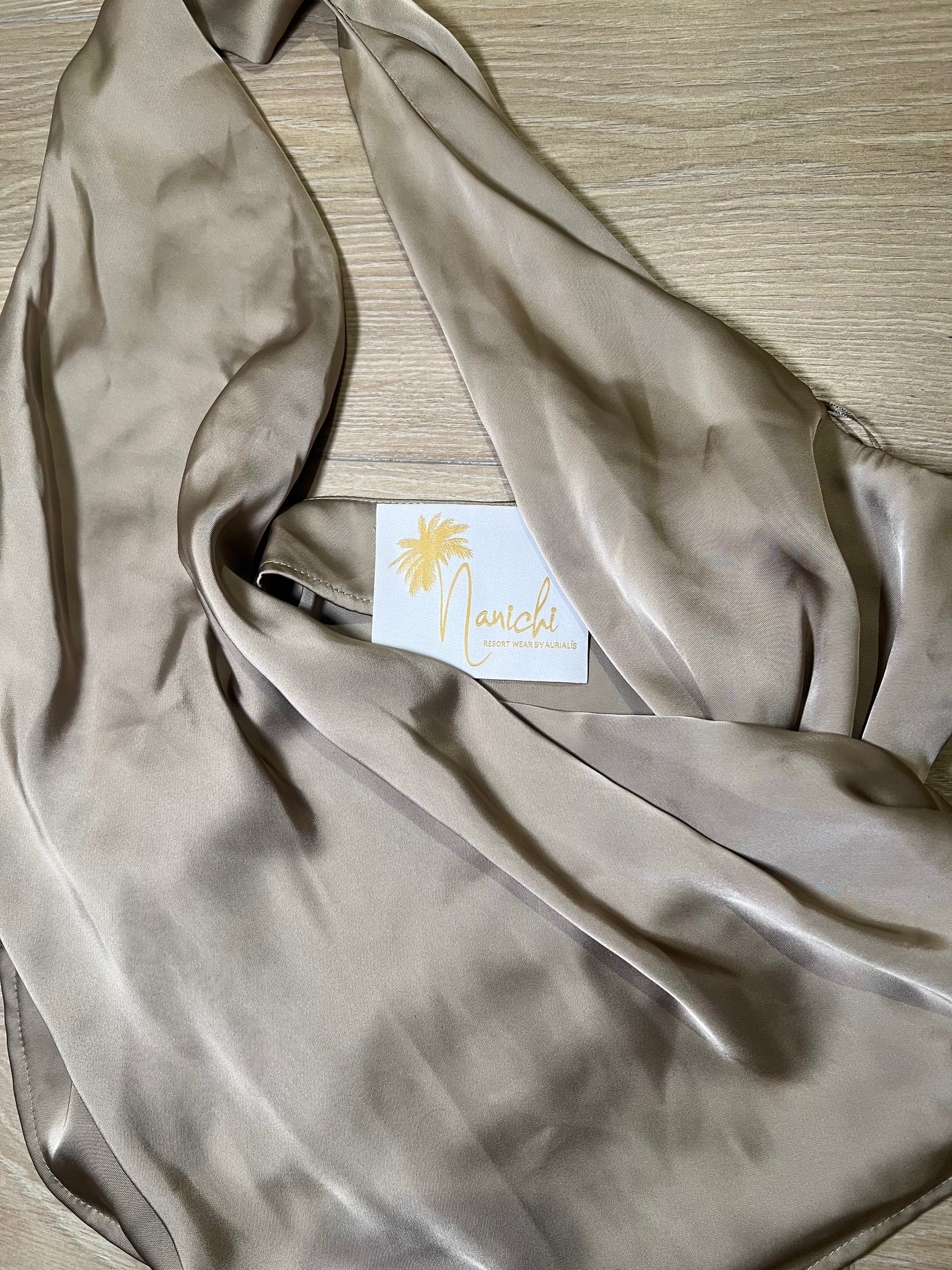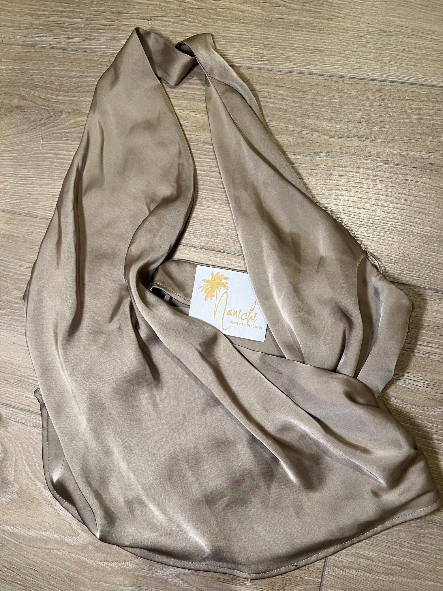 Originally sampled as part of our Autumn/Winter capsule, this halter top features a deep neckline with a front knot detail and self-tie straps. A nod to our brand’s early experimentation with form and texture.